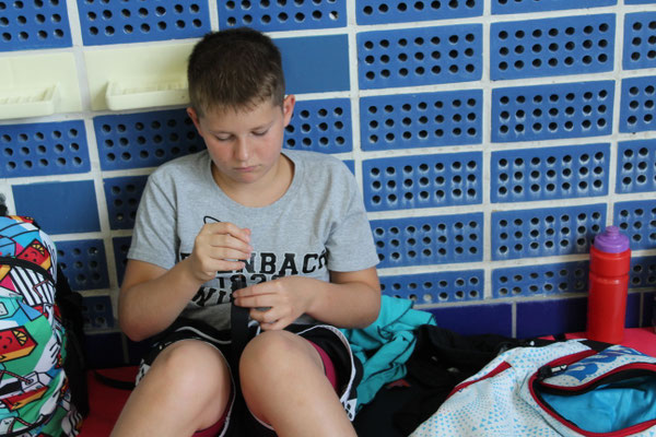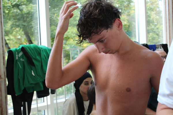 Auch Lasse Majka (2009) hatte sich für die 2,5 km entschieden. Trotz verletzungsbedingtem Trainingsausfall nahm er die Herausforderung an und machte seinen Gegnern das Leben schwer. Zunächst galt es aber, sich aus dem üblichen Startgerangel herauszuhalten, um nicht unglücklich getroffen zu werden. Im Anschluss schwamm Lasse drei perfekte Runden auf dem 833m-Dreieckskurs im See, kämpfte um jeden Meter und holte verdient ebenfalls die Silbermedaille im Jahrgang.