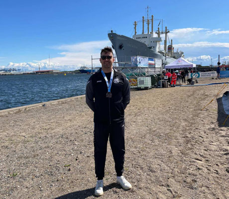 Am vergangenen Wochenende reiste Martin Hochbrückner vom Wassersportverein 1923 Offenbach einmal durch halb Deutschland gen Nordosten der Republik - in die mecklenburgische Hafenstadt Rostock. Hier fanden vor beeindruckender Kulisse gut zwei Monate nach den Internationalen Deutschen Meisterschaften im Freiwasser vom 22. – 24. August 2025 auch die Internationalen Deutschen Masters-Meisterschaften im Freiwasser statt. In einem hochkarätig besetzen Teilnehmerfeld hatten 249 Aktive aus dem In- und Ausland für 446 Einzel- und 28 Staffelstarts gemeldet.
